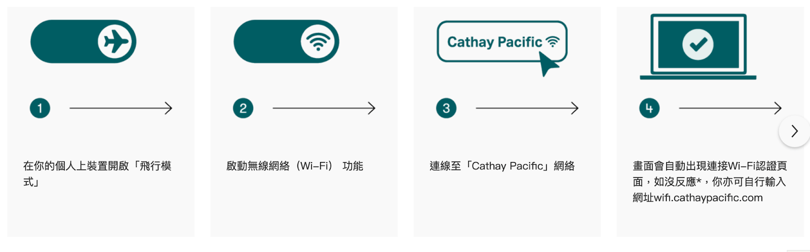 - Step 3. 系統將會顯示連結頁面,如未顯示請輸入 wifi.cathaypacific.com