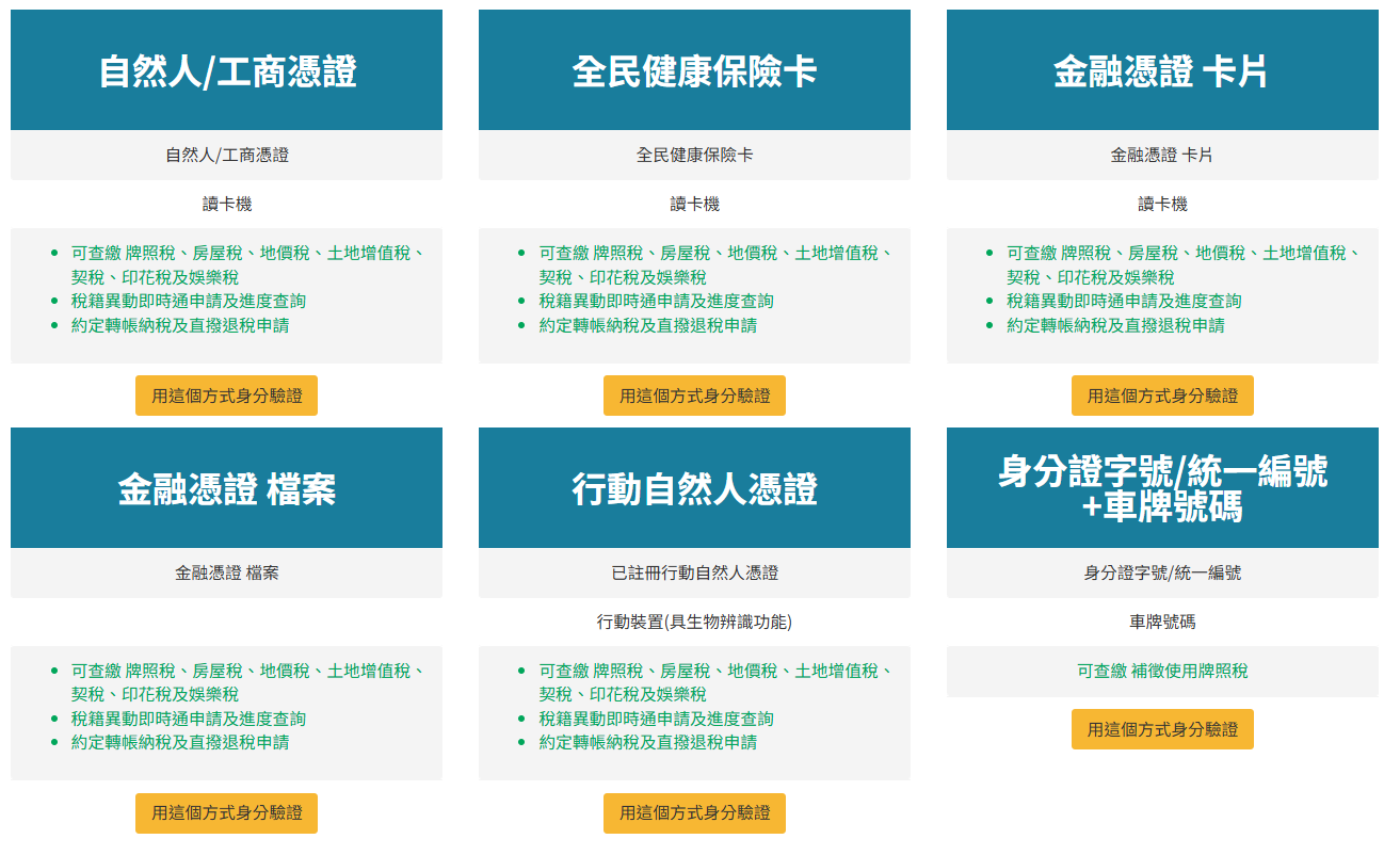 那汽機車牌照稅繳費完成後想確認自己是否繳費成功要怎麼查呢?繳完稅後可至地方稅網路申報作業網,選擇線上查繳稅及電子傳送服務或可經由 paytax 網路繳稅服務網進行牌照稅繳費查詢,定期開徵查繳稅及電子傳送服務來說有 5 種登入查詢方式,包含:自然人憑證、健保卡、金融憑證(卡片)、金融憑證(檔案)和行動自然人憑證。