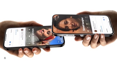 - NameDrop:只要將 iPhone 彼此靠近,或把 iPhone 和 Apple Watch 放在一起,就能輕鬆分享聯絡資訊,也可以分享內容或開始「同播共享」,在彼此 iPhone 裝置鄰近的時候,一起聽音樂、看電影或玩遊戲
